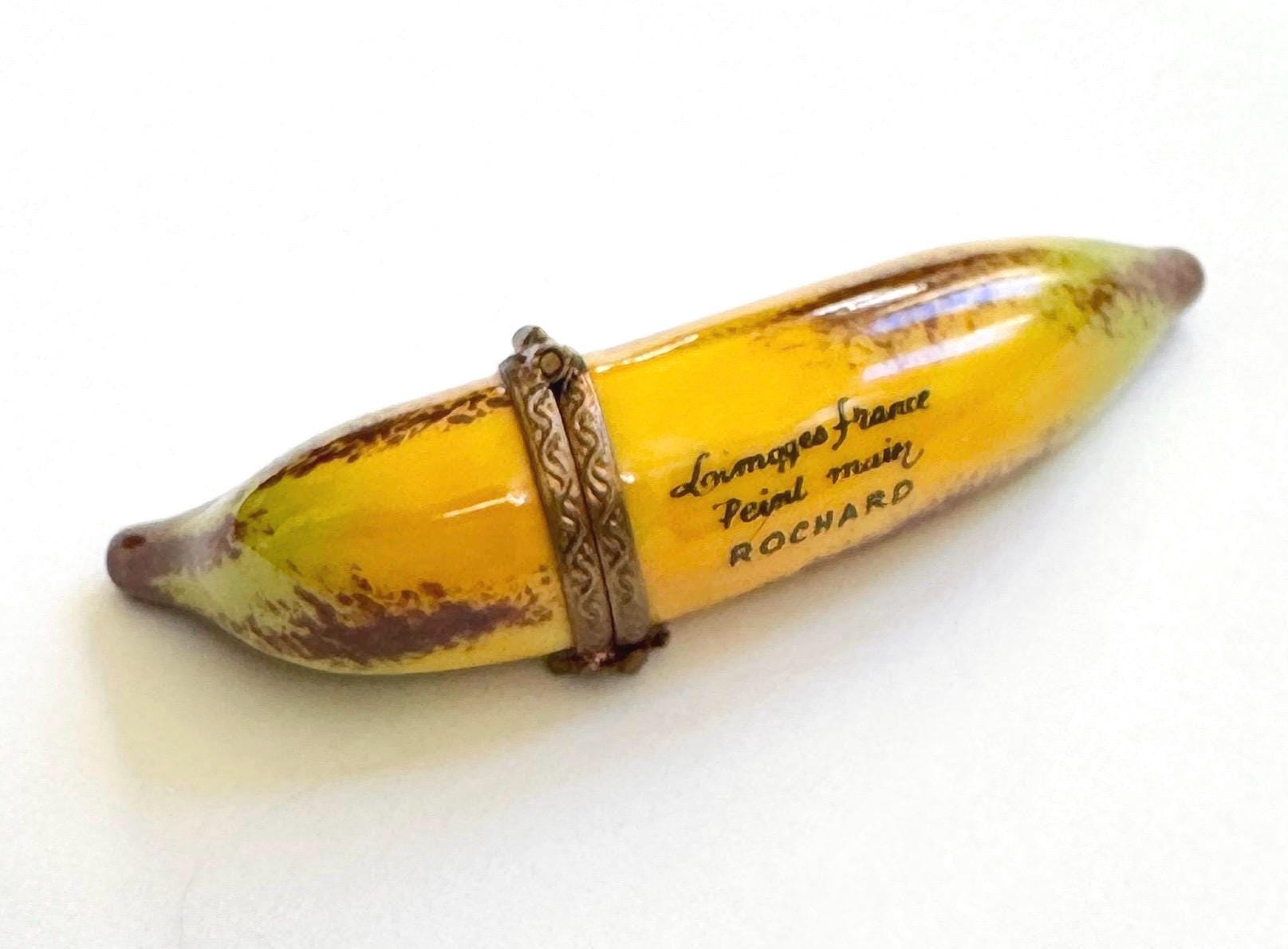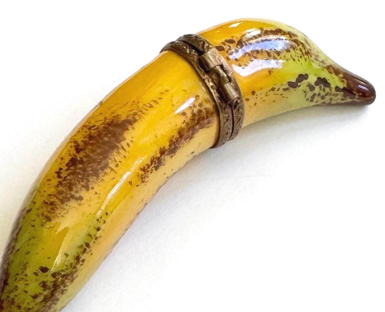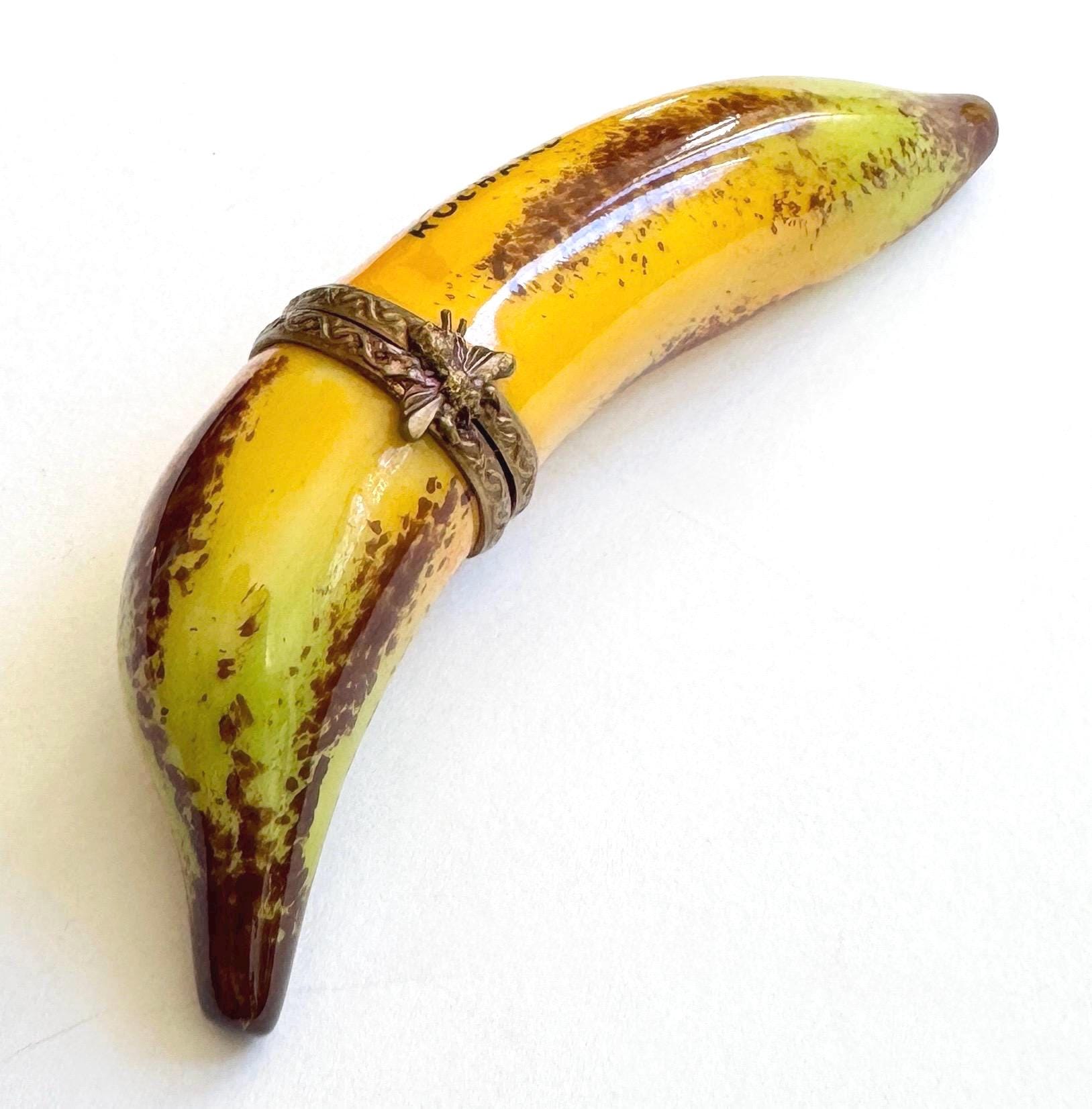 Adorable little vintage Limoges hand-painted porcelain banana box with gold bee clasp