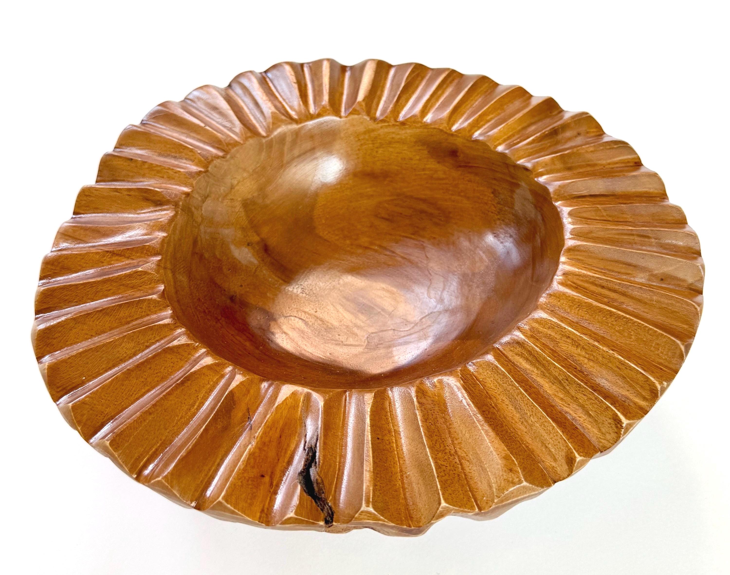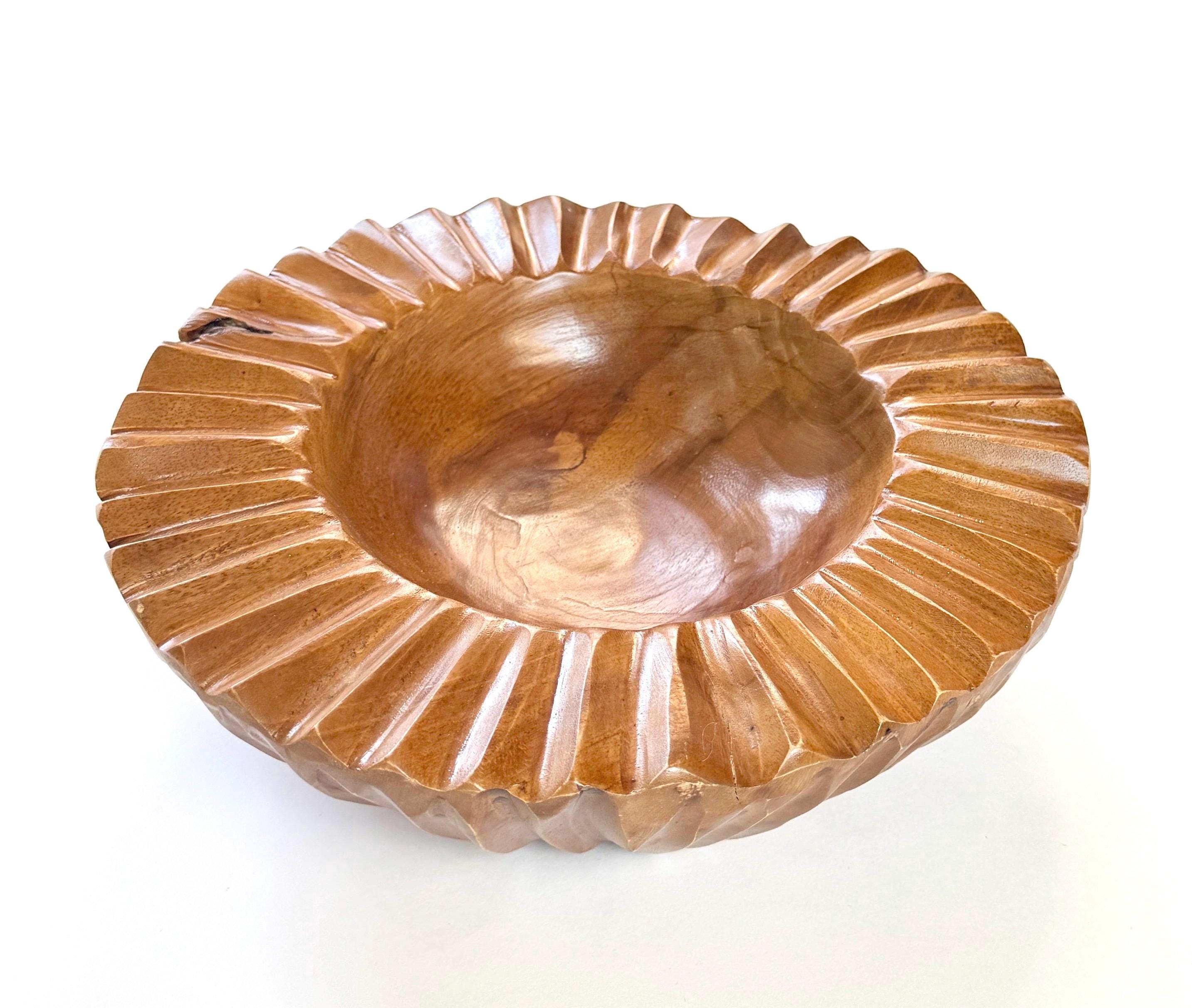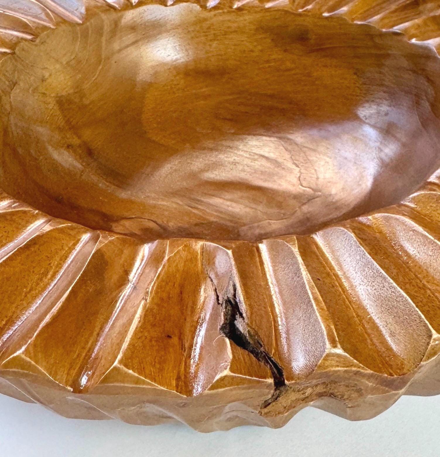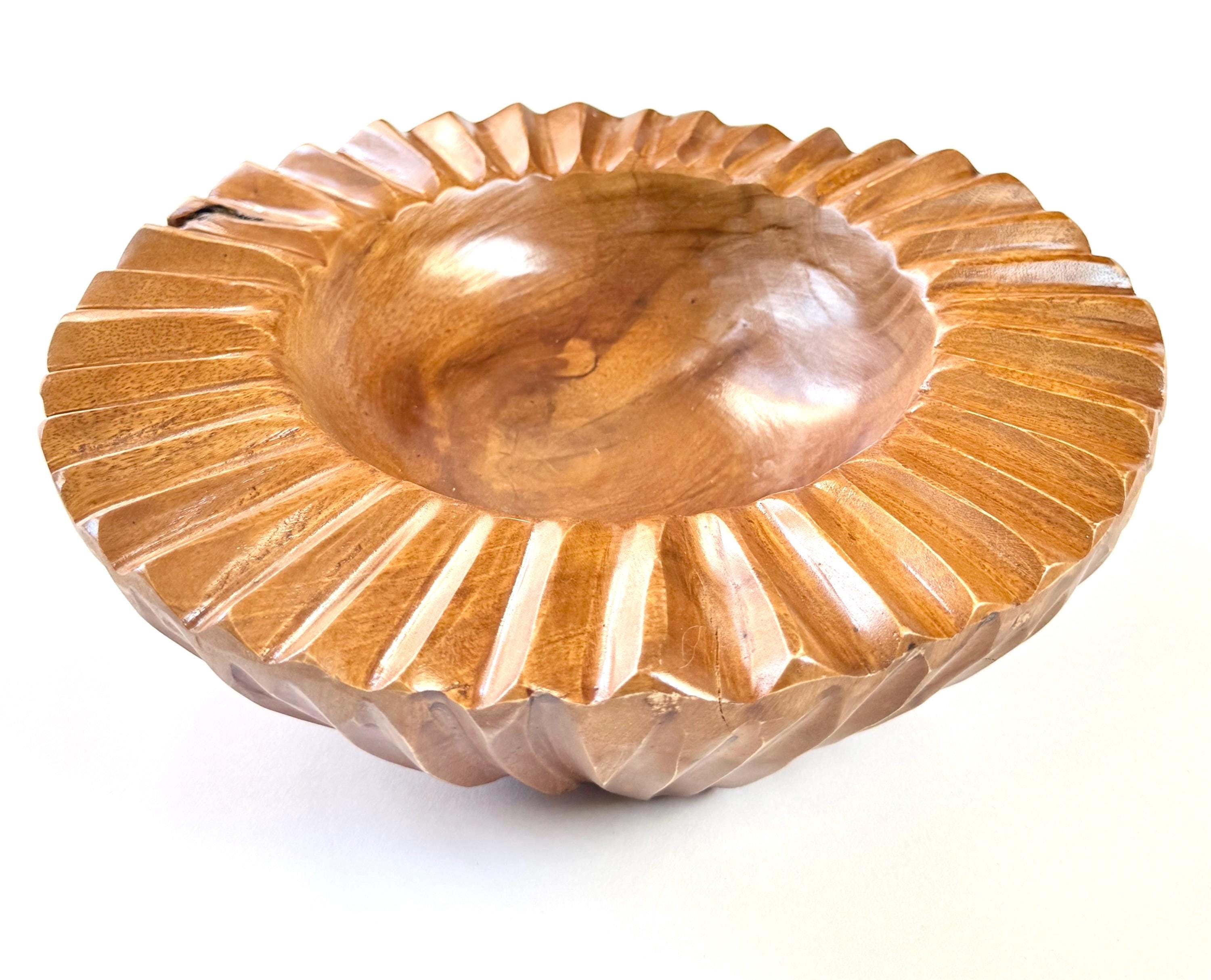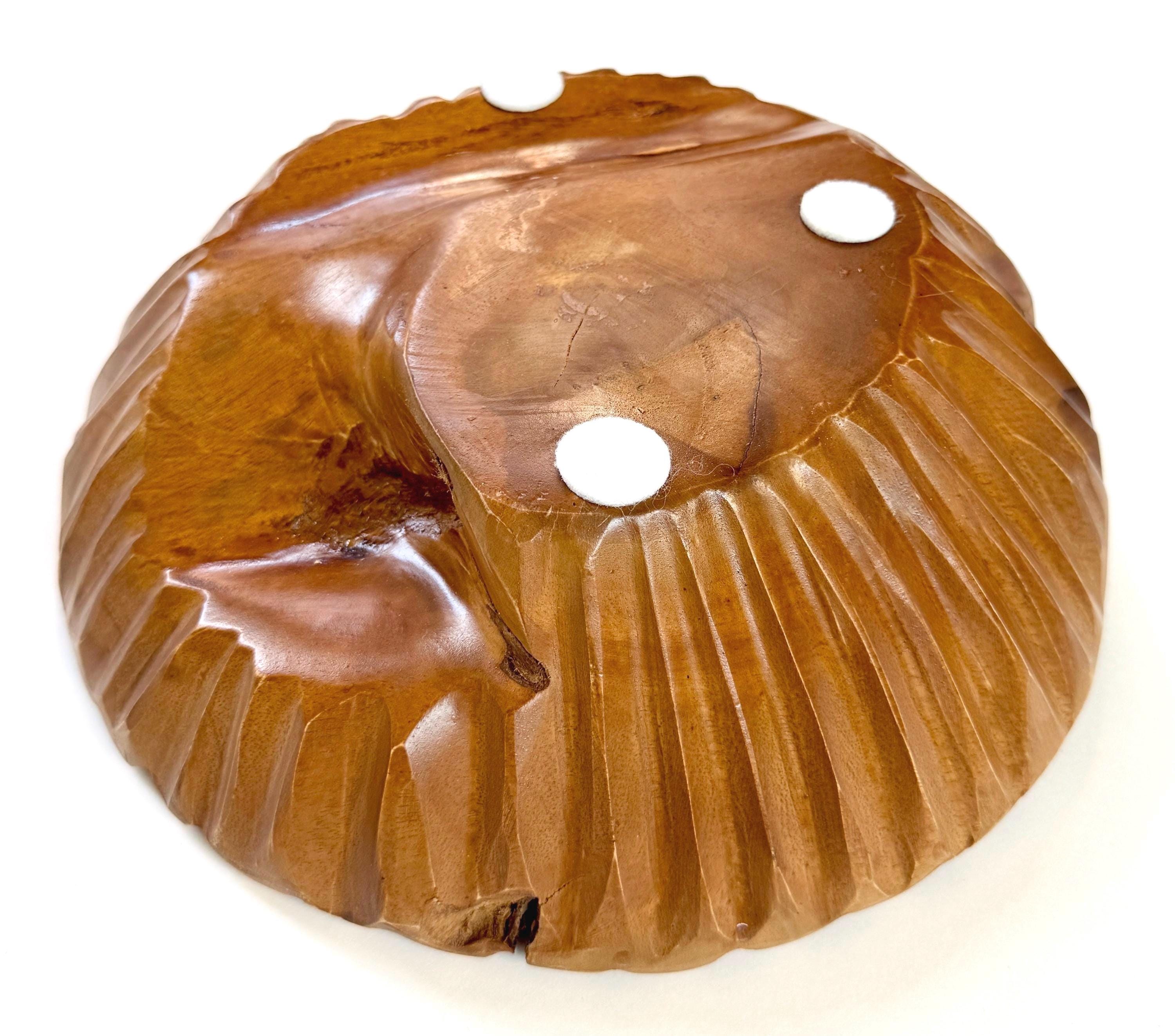 Sculptural vintage carved solid wood decorative bowl