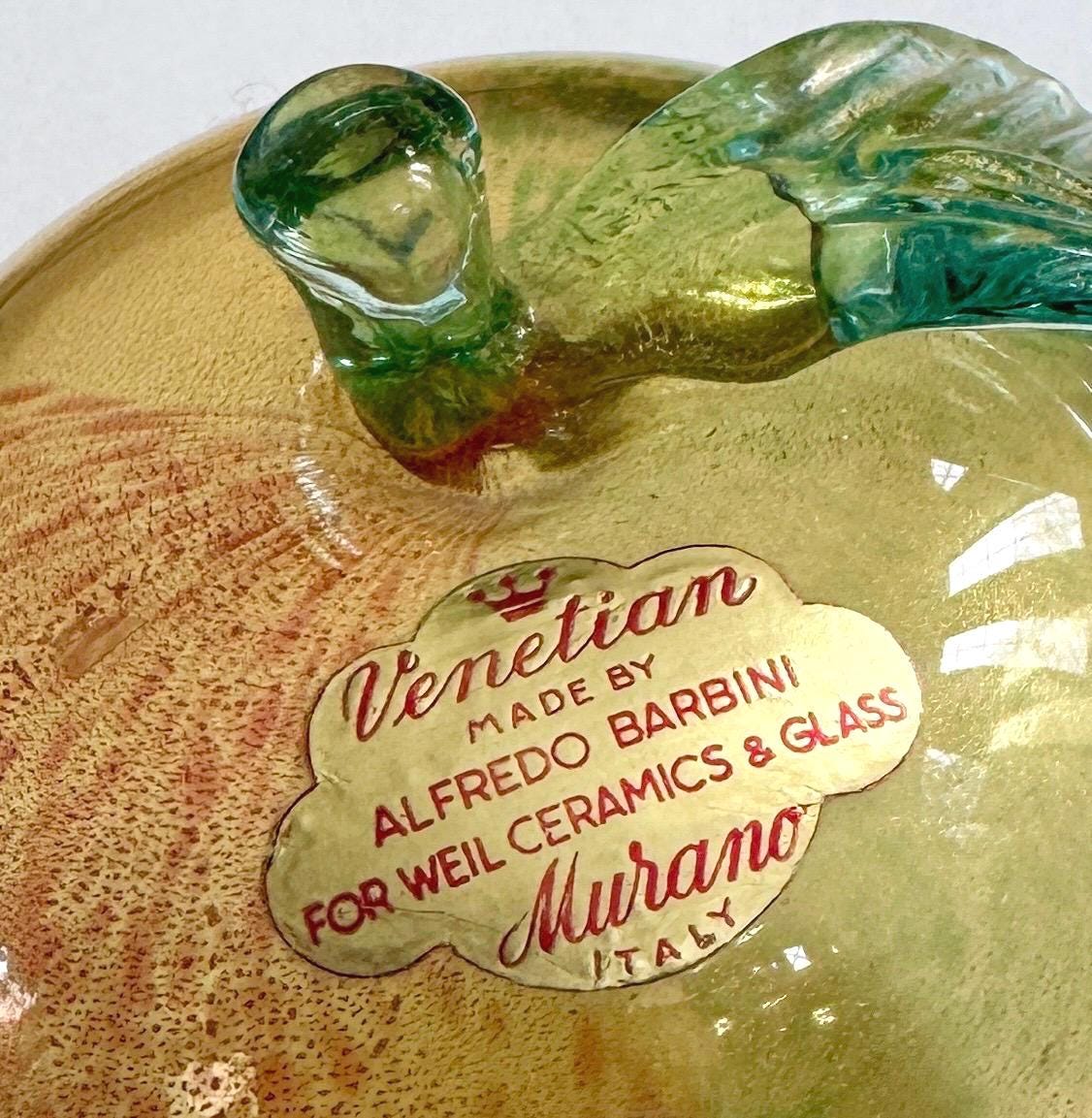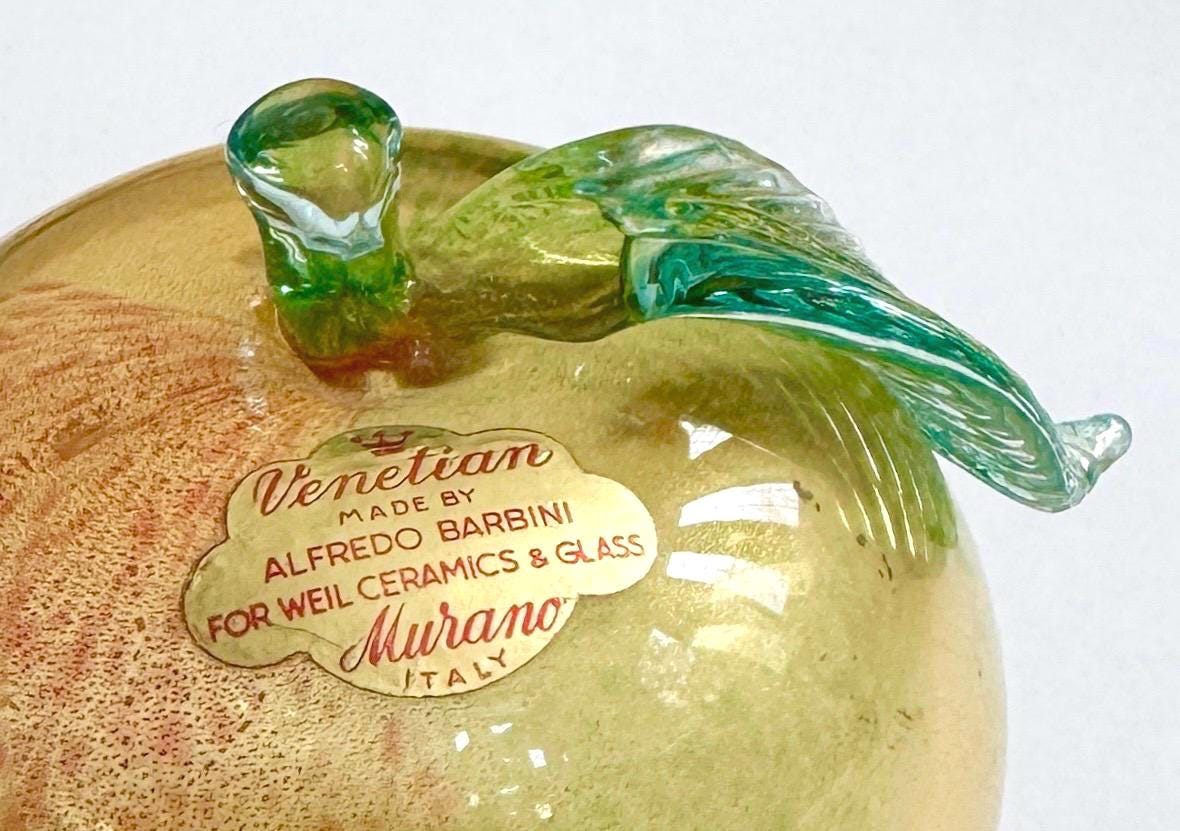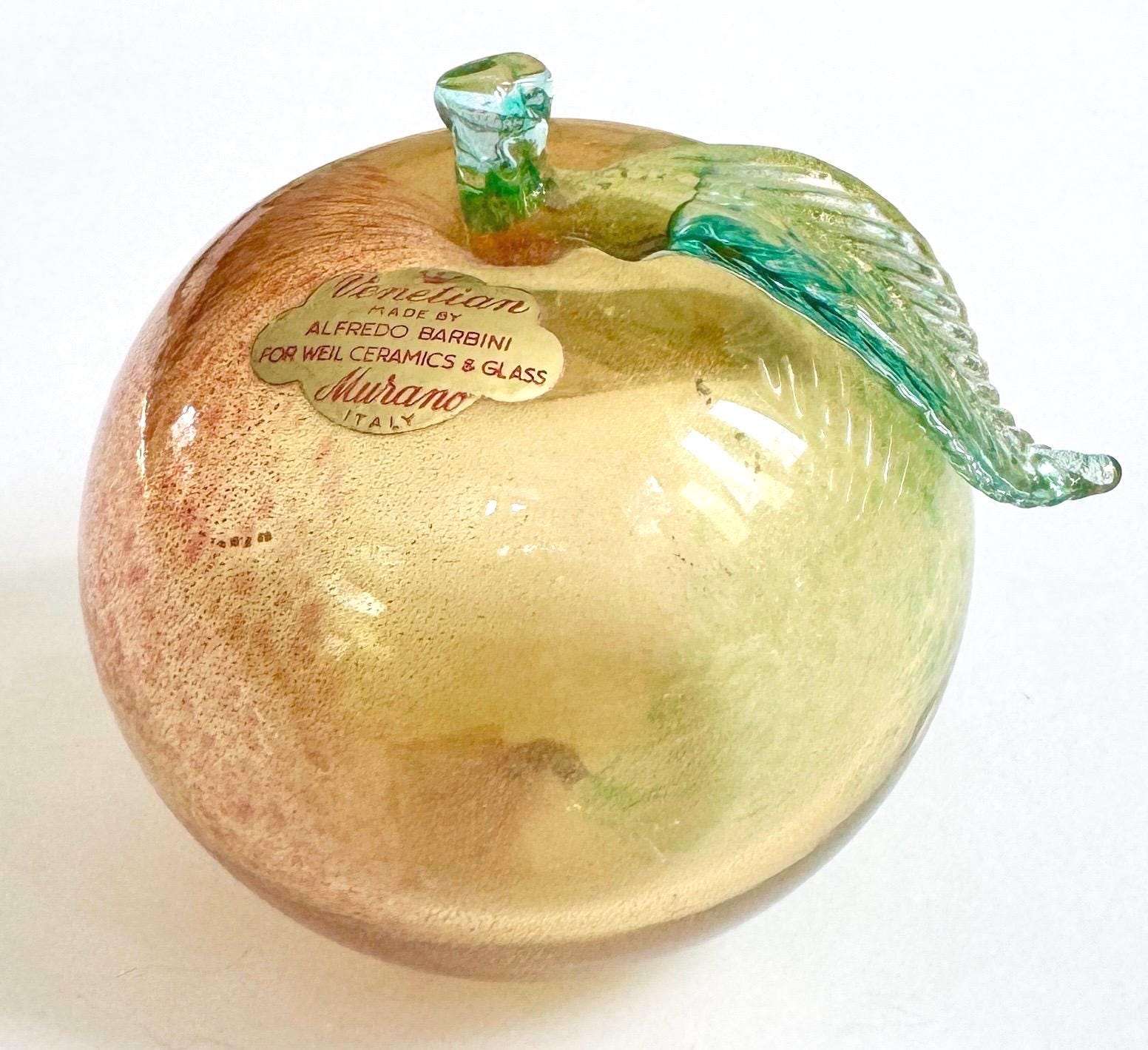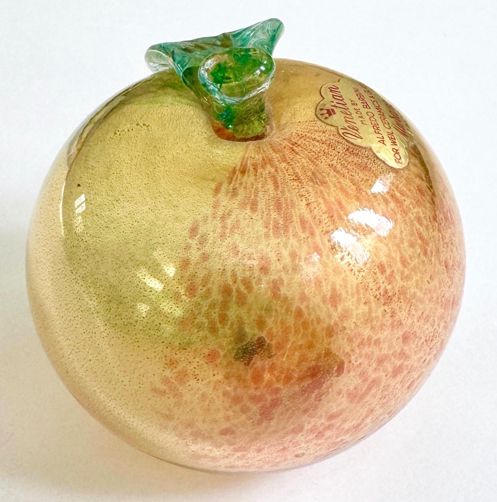 Highly collectible vintage Alfredo Barbini gold-flecked Murano glass apple