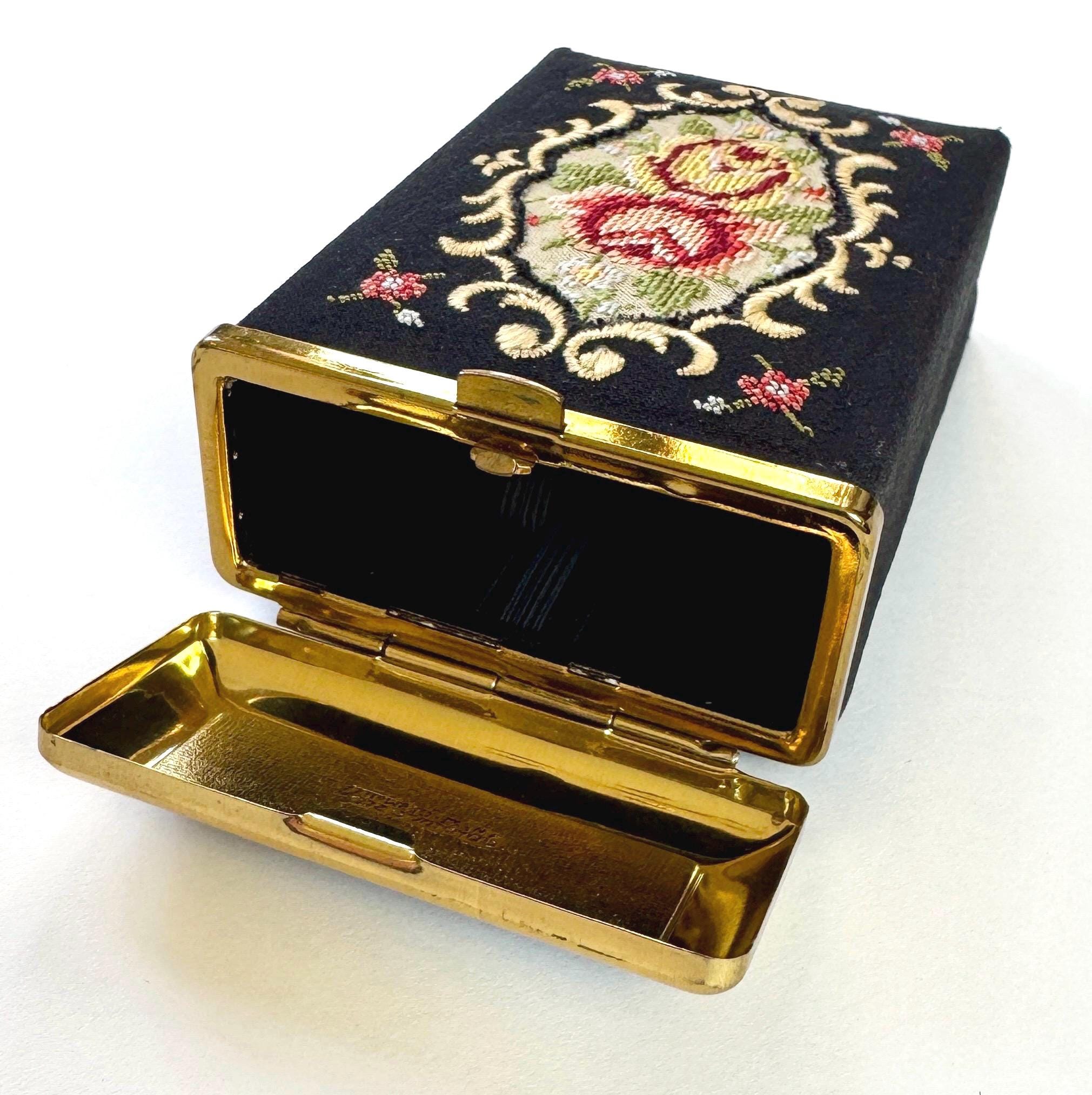 Vintage floral cigarette case with hinged lid