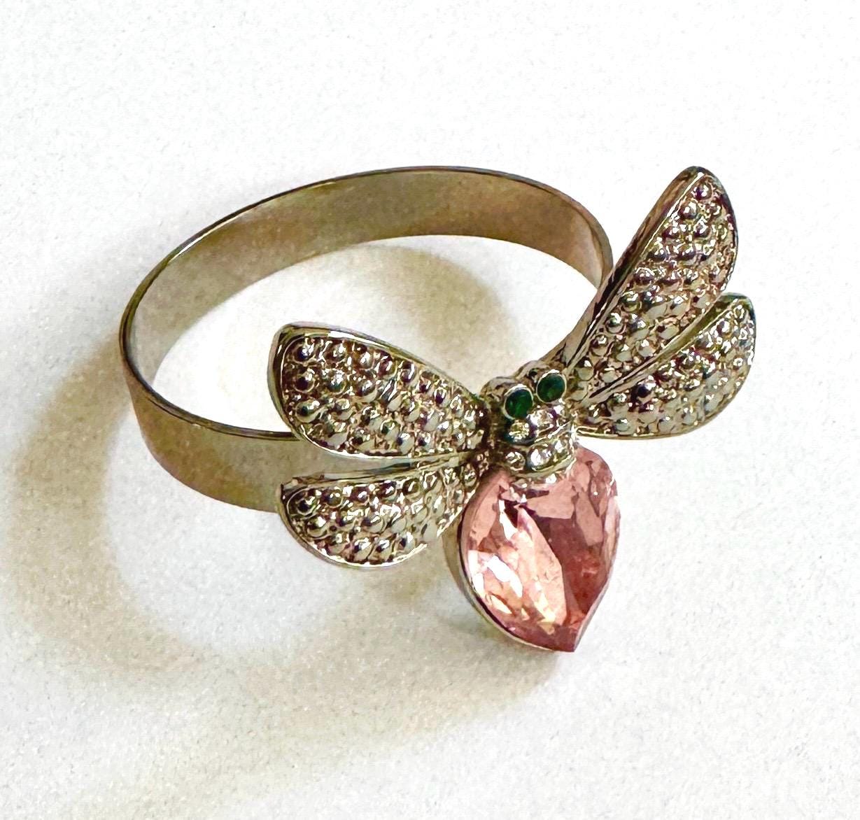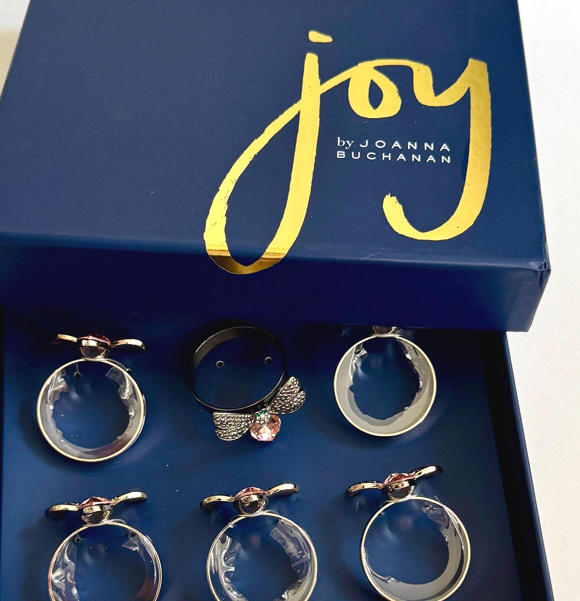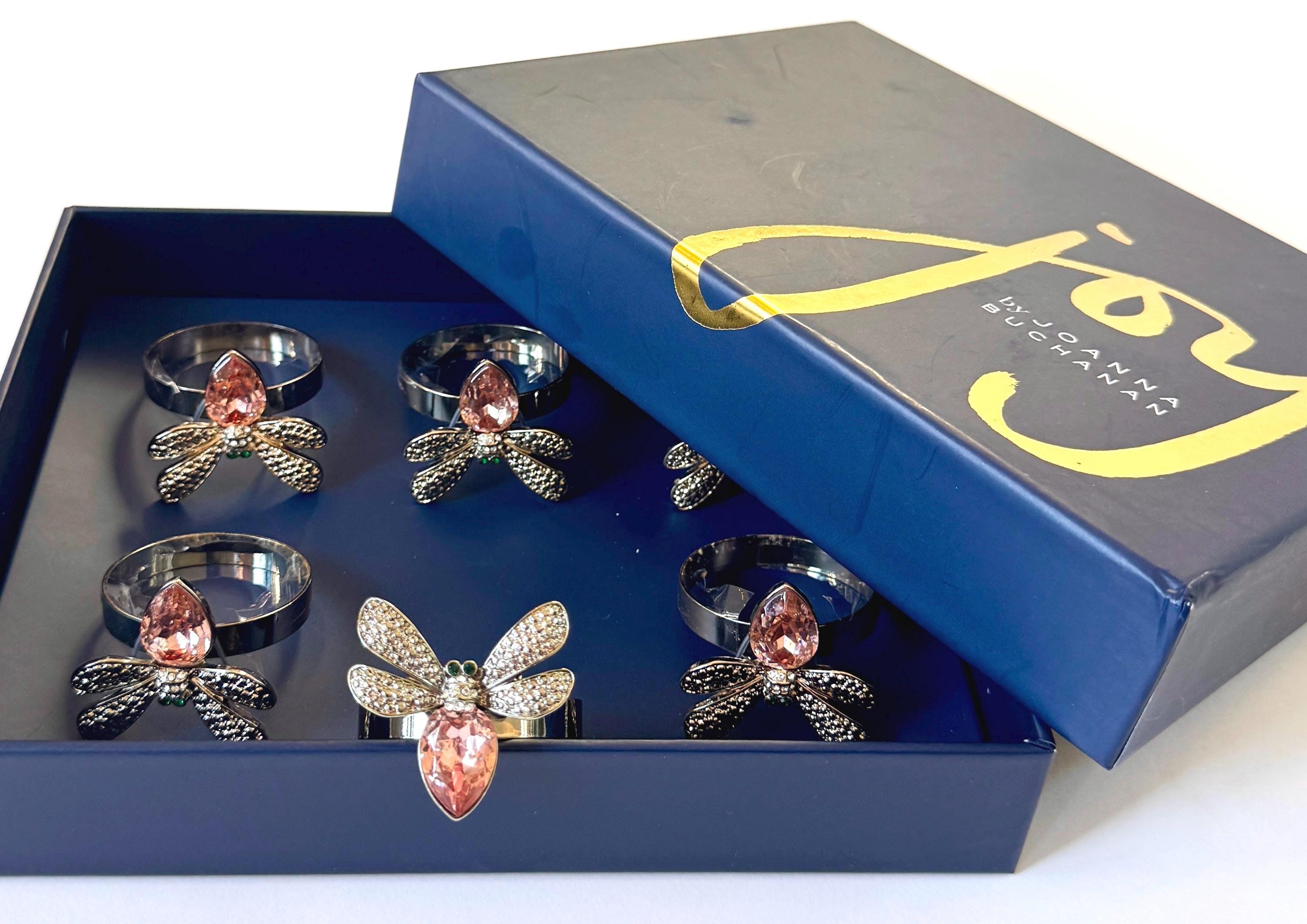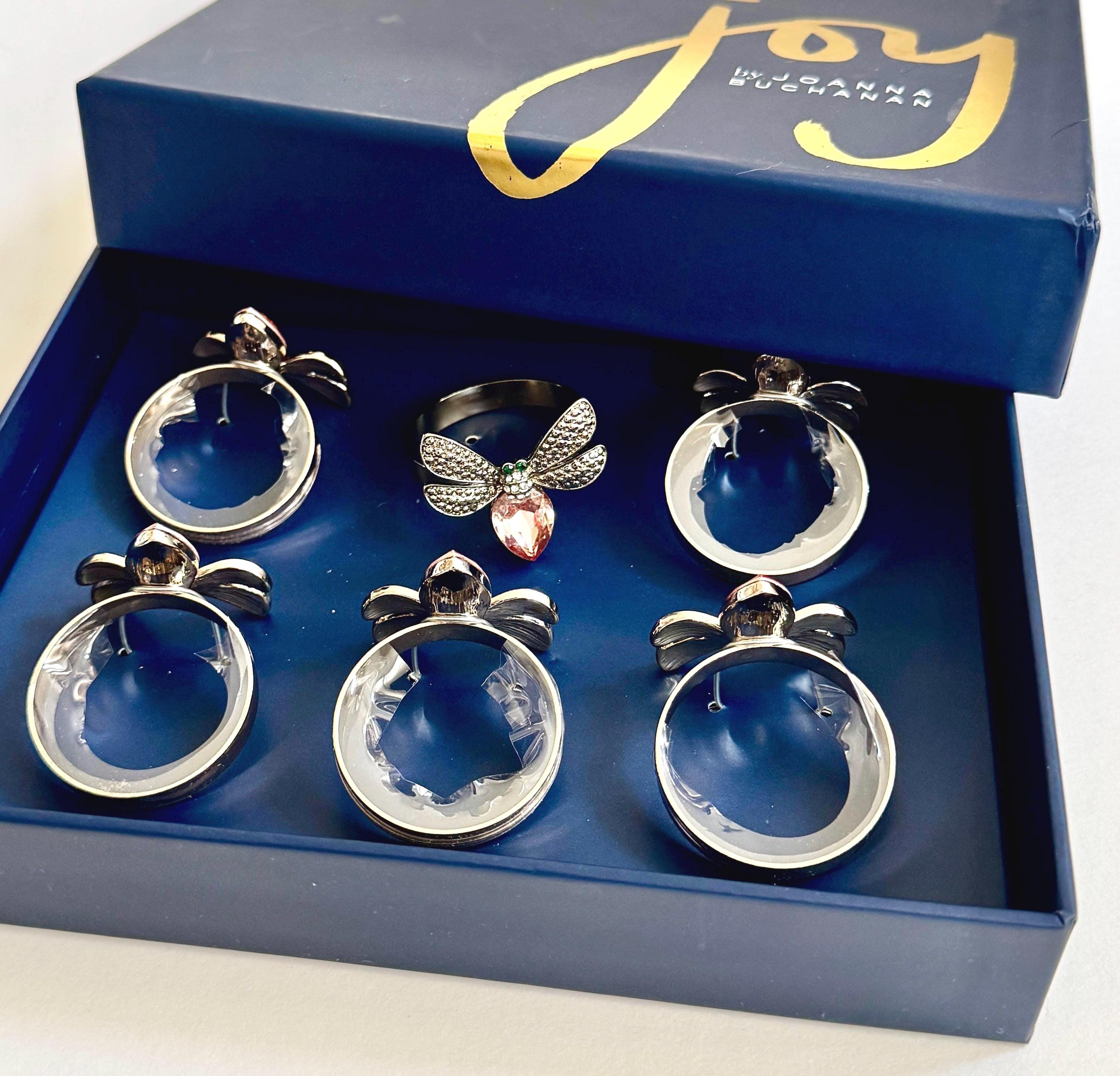 Original boxed set of 6 Joy by Joanna Buchanan rhinestone butterfly napkin rings
