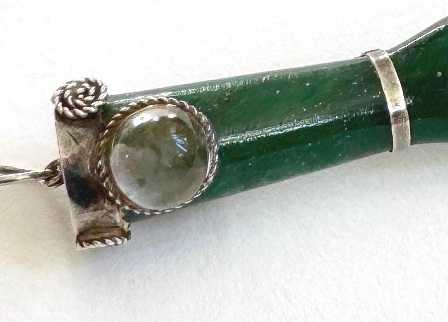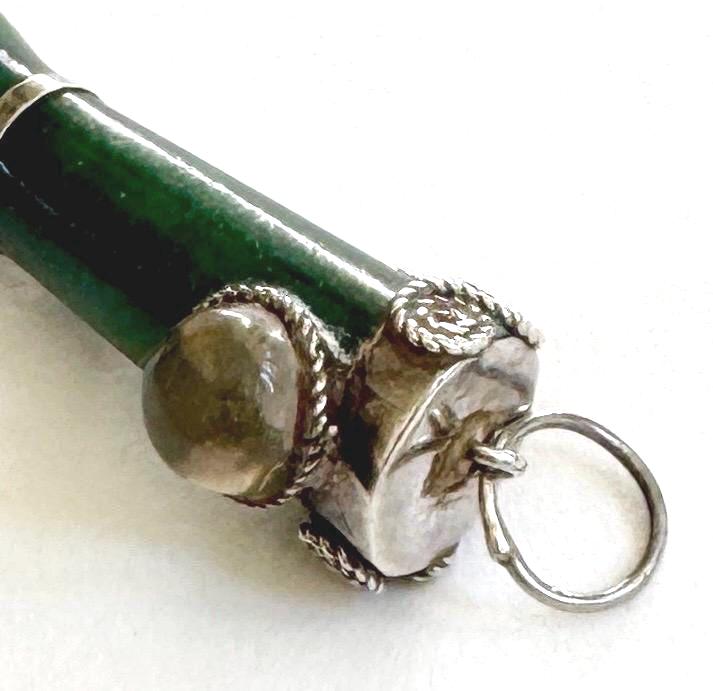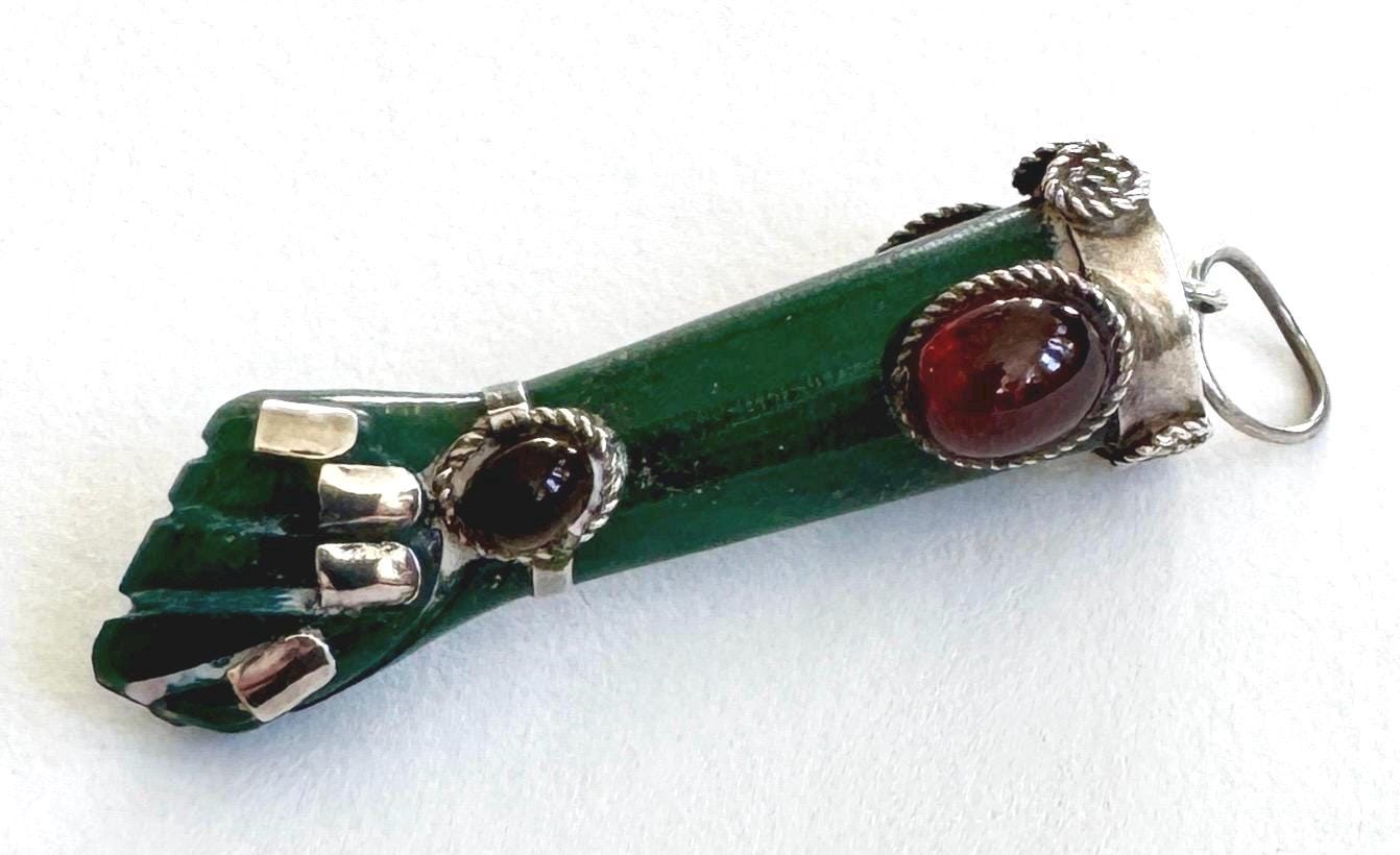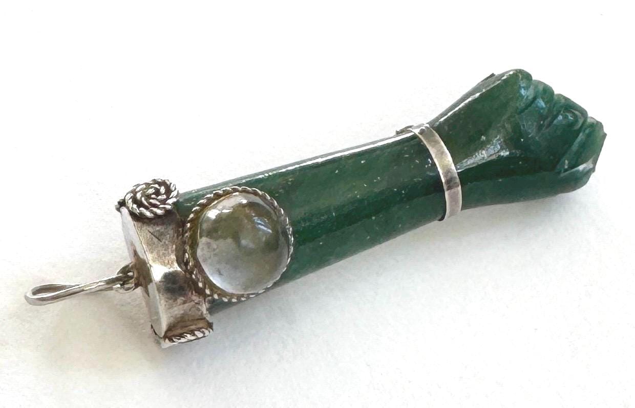 Vintage carved stone figa pendant with silver filagree and blue stone embellishments