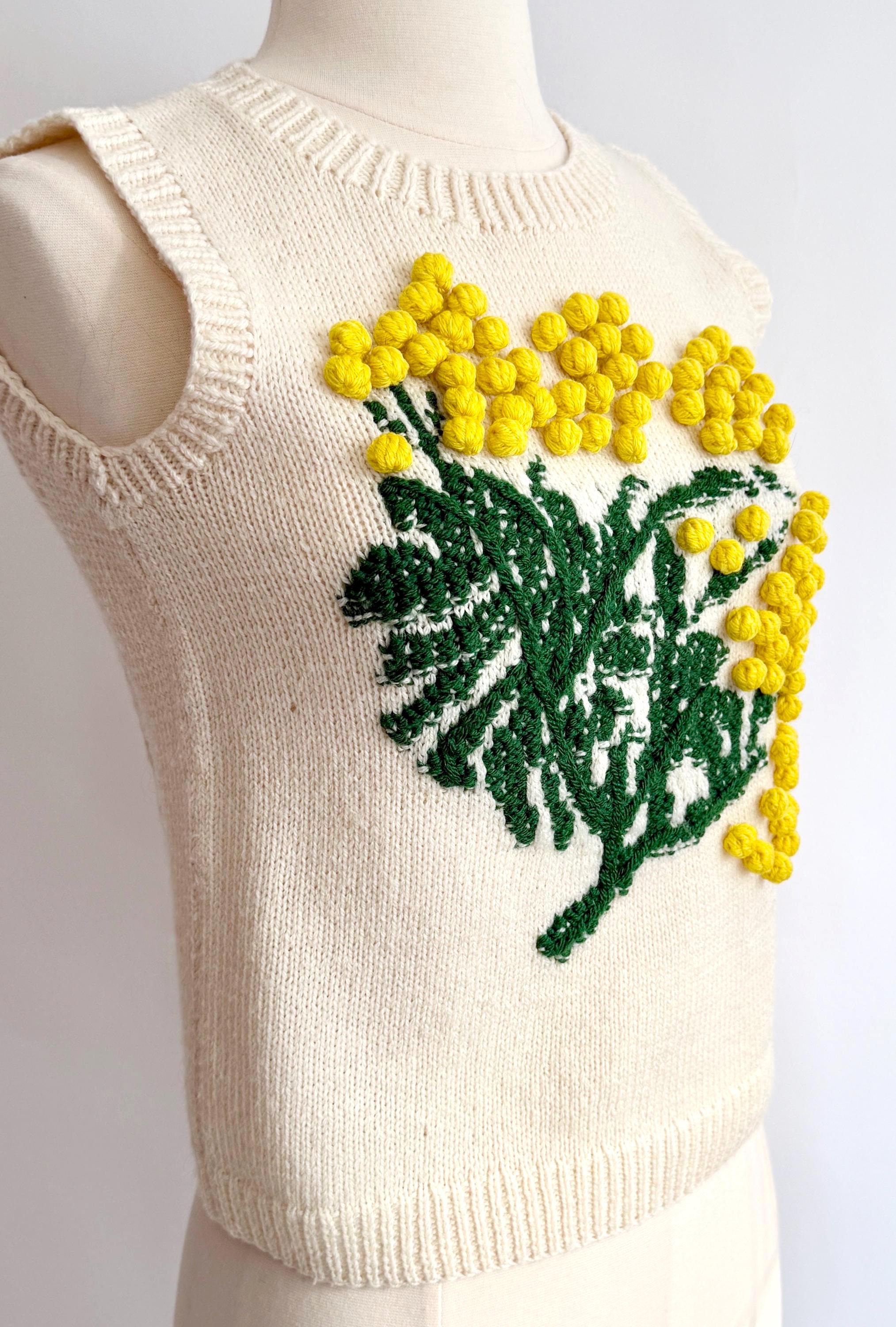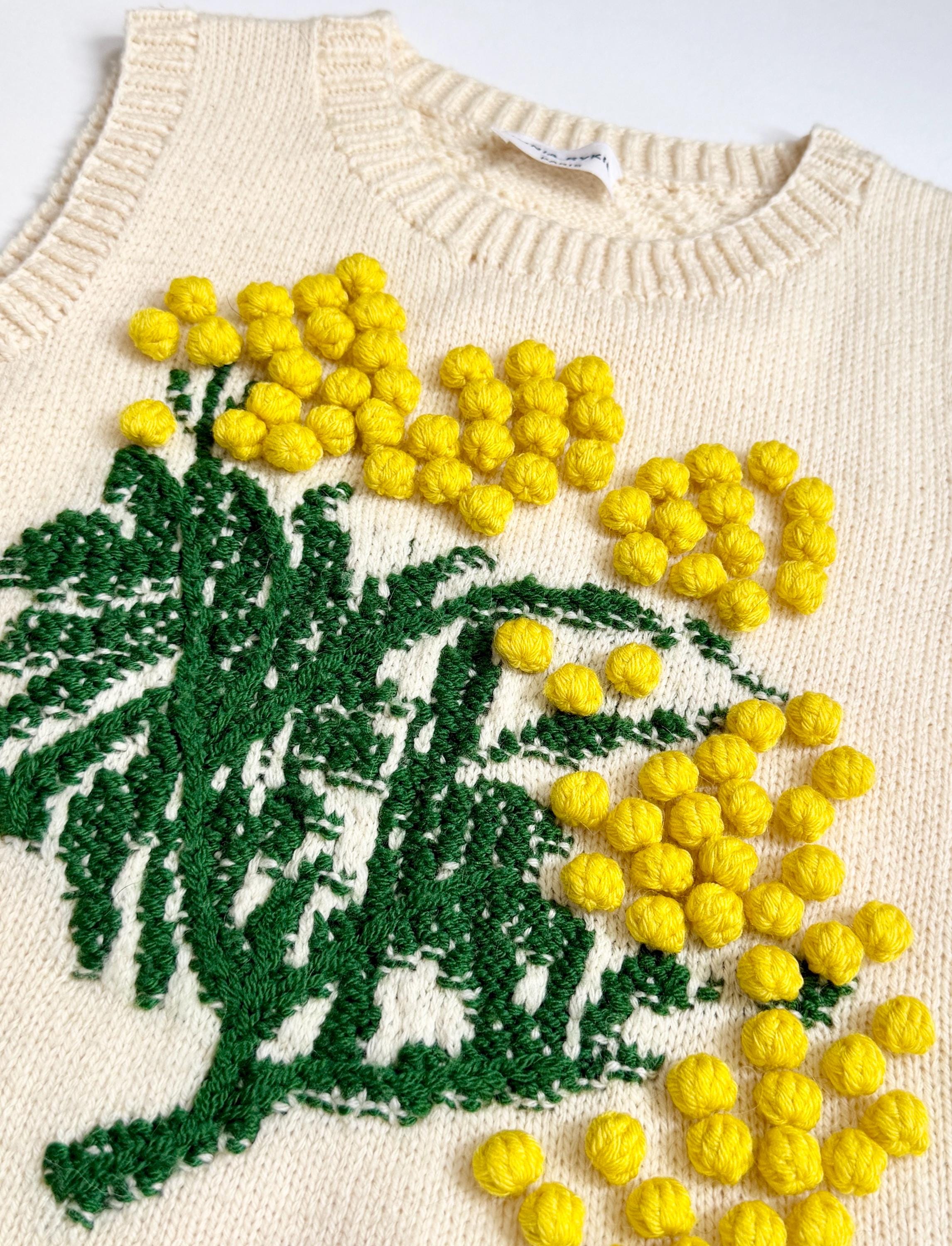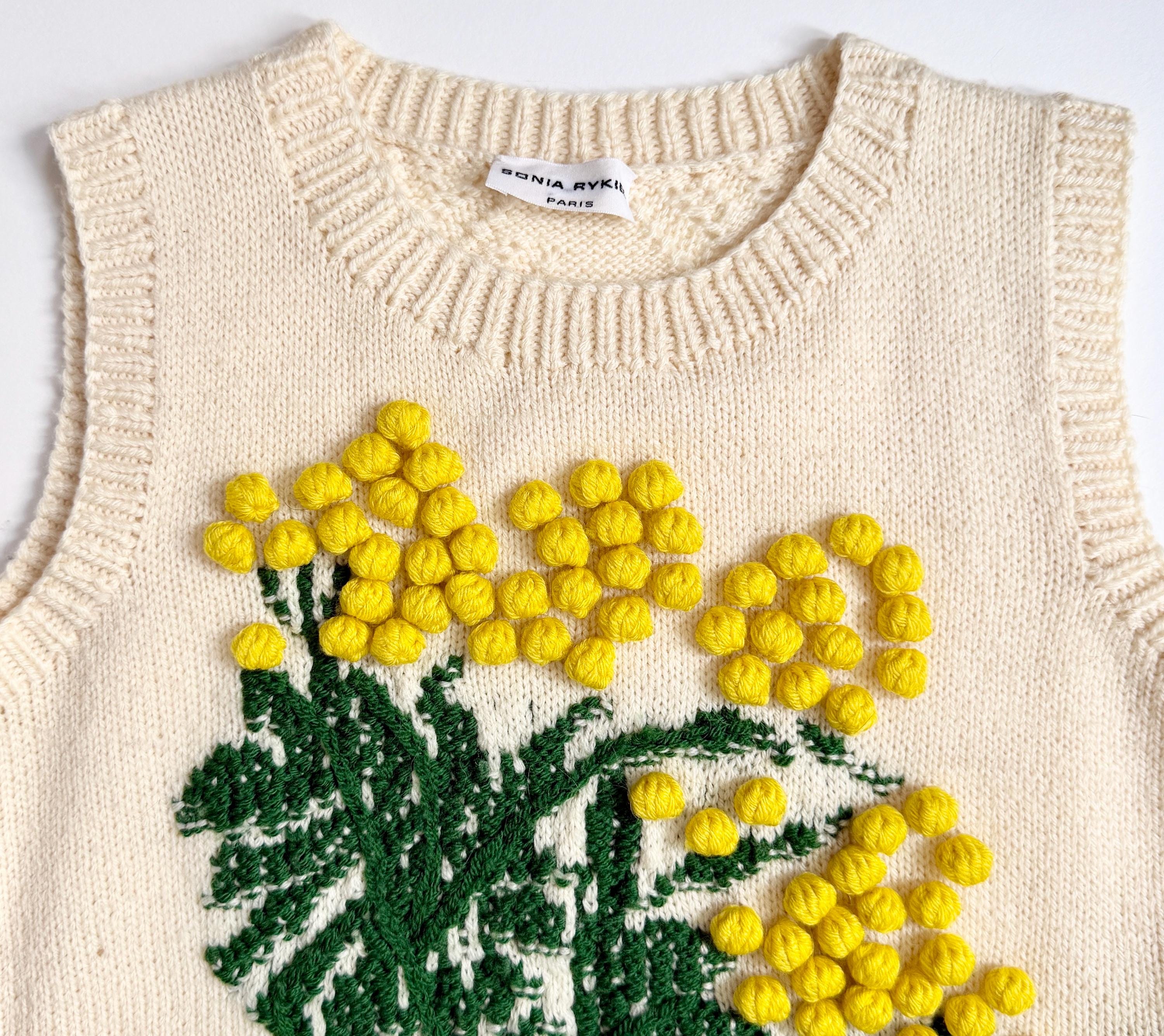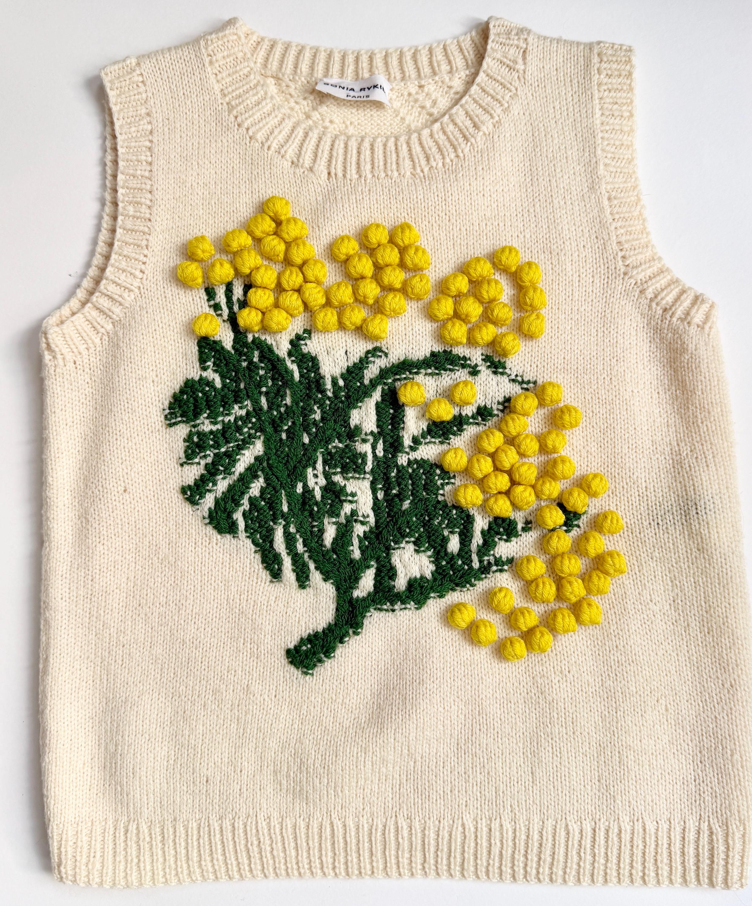 Soft Sonia Rykiel sweater vest with “popcorn” knit floral front