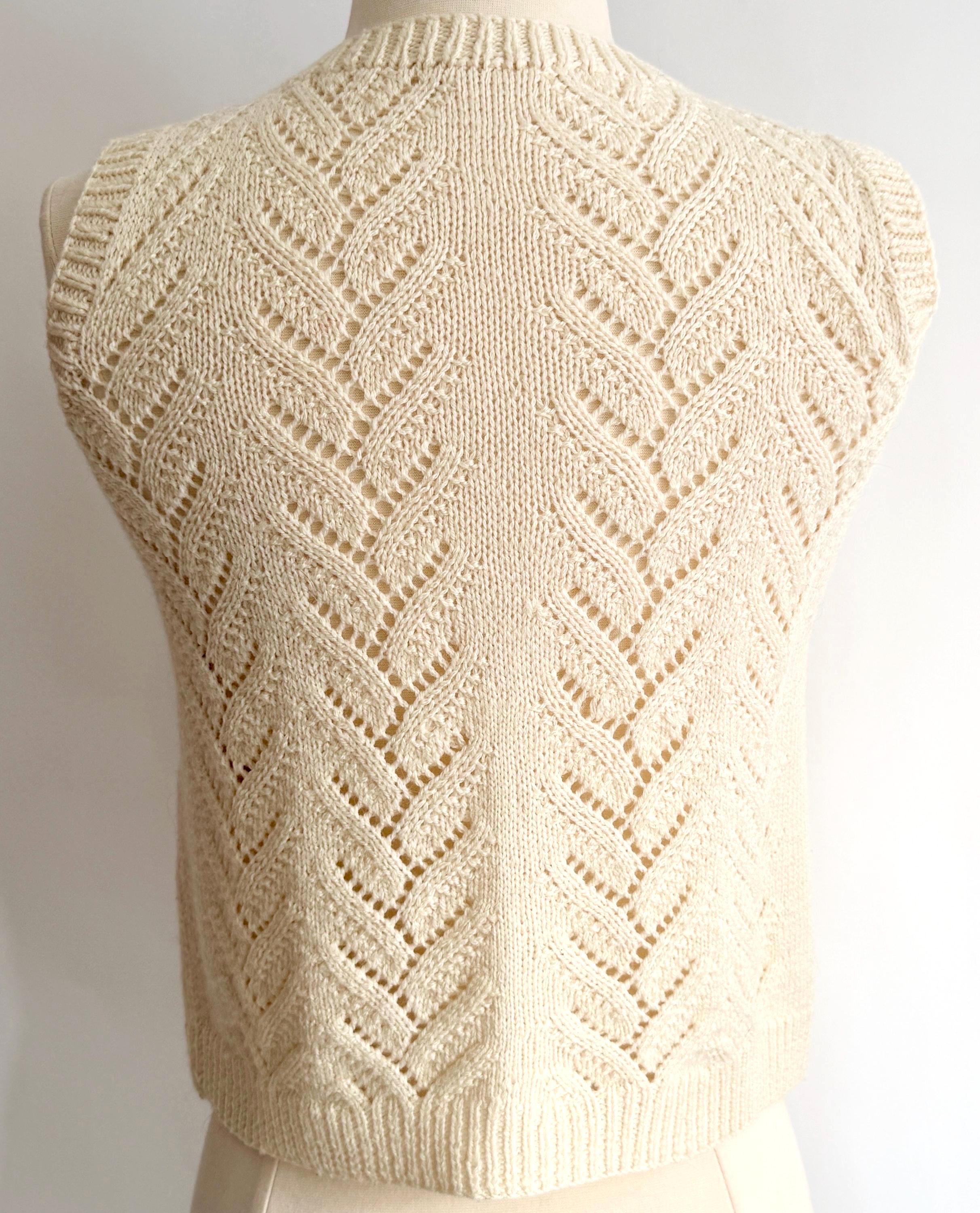 Sweater has a fitted style. Marked size M but seems to fit closer to a modern XXS/XS. Photographed on a size 2/4 dress form. Please use measurements to ensure a proper fit.