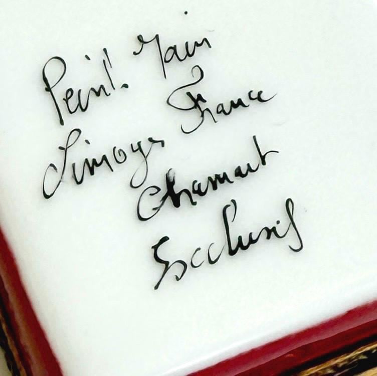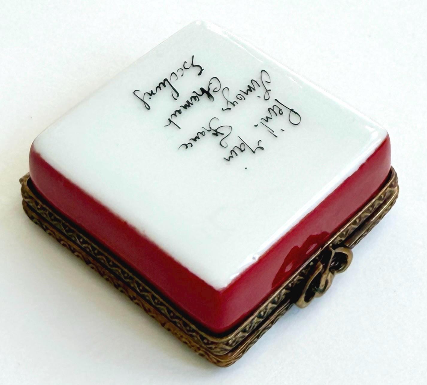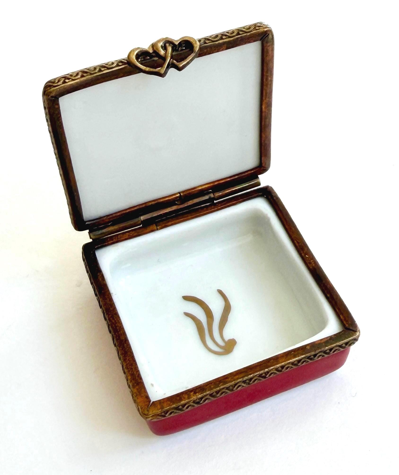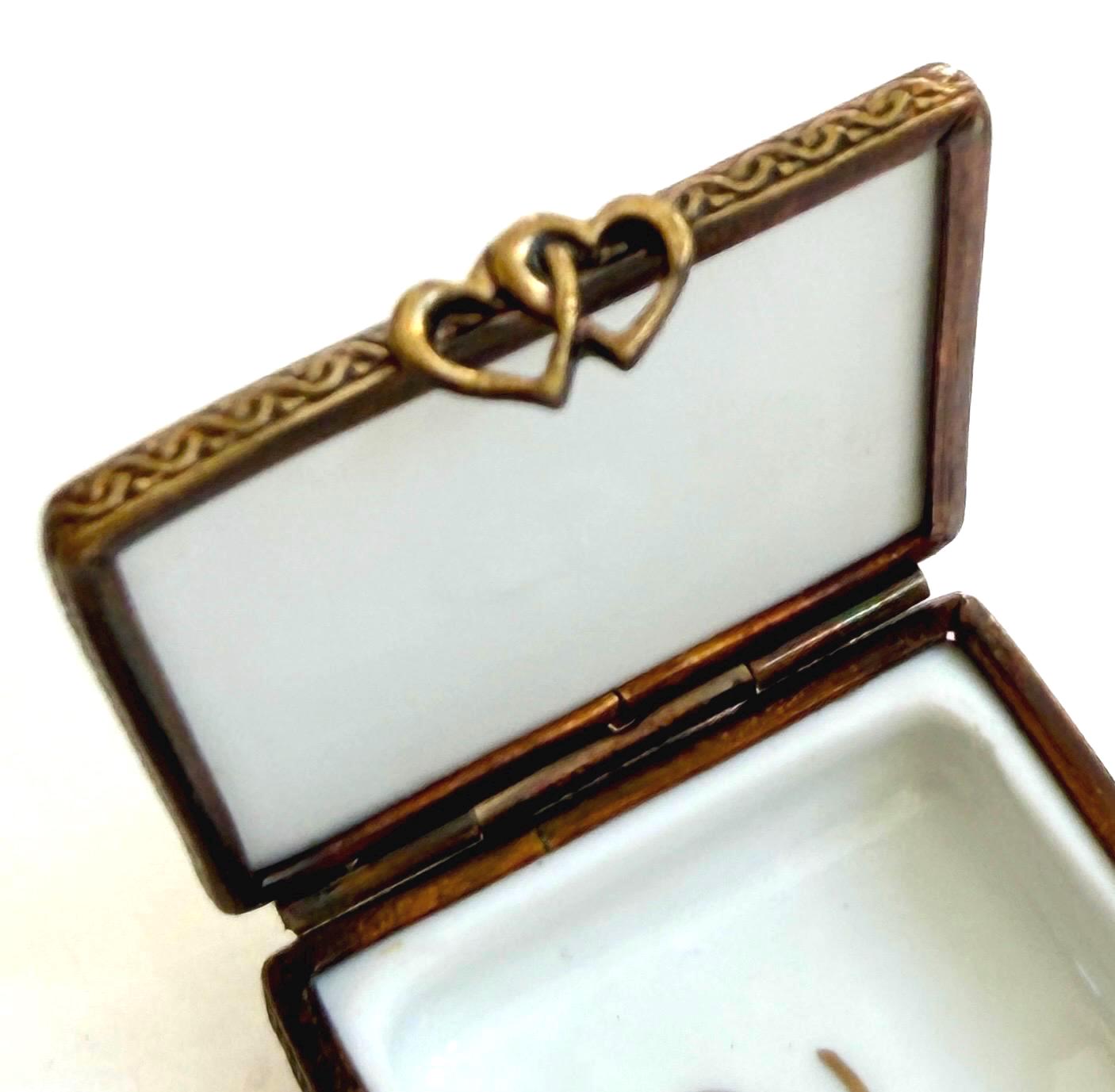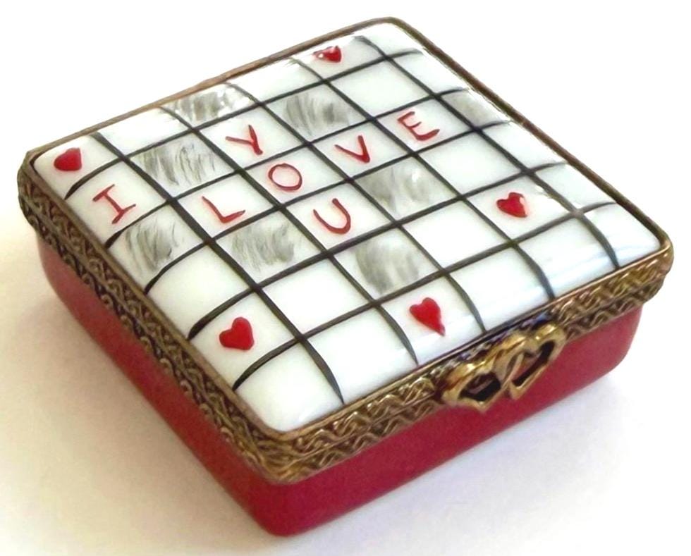 Adorable vintage Limoges hand-painted porcelain I LOVE YOU crossword puzzle box with double heart clasp