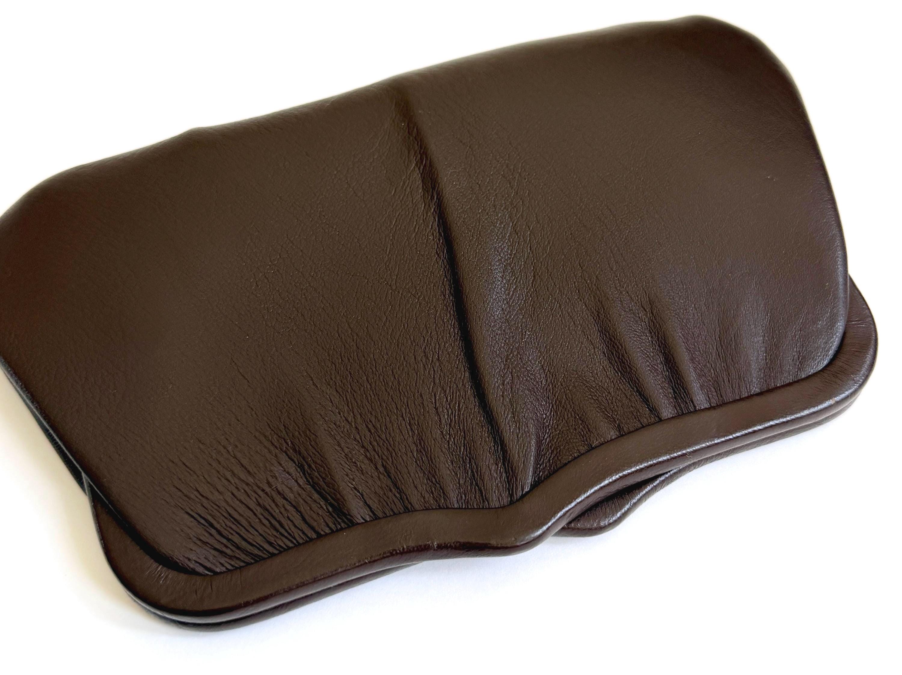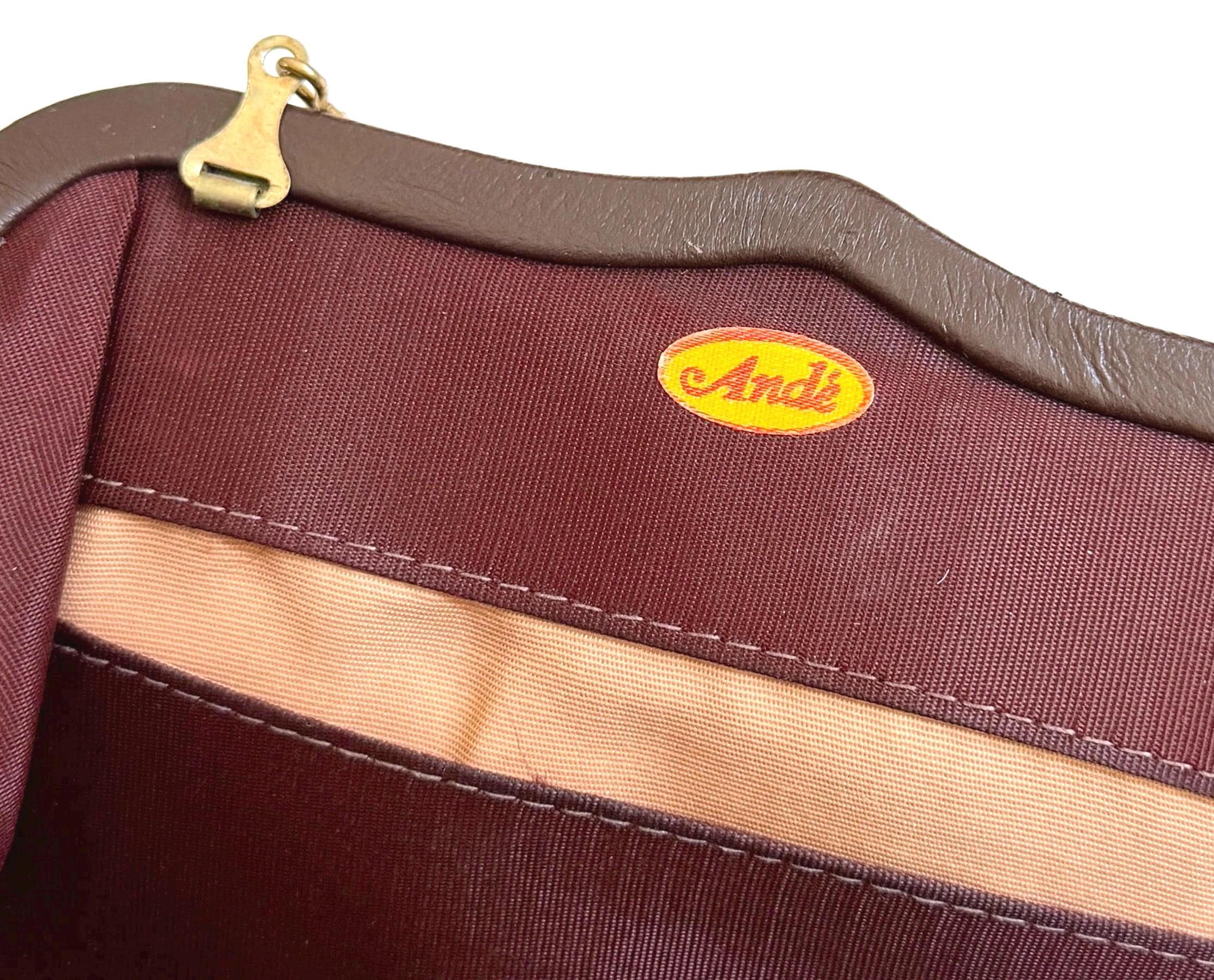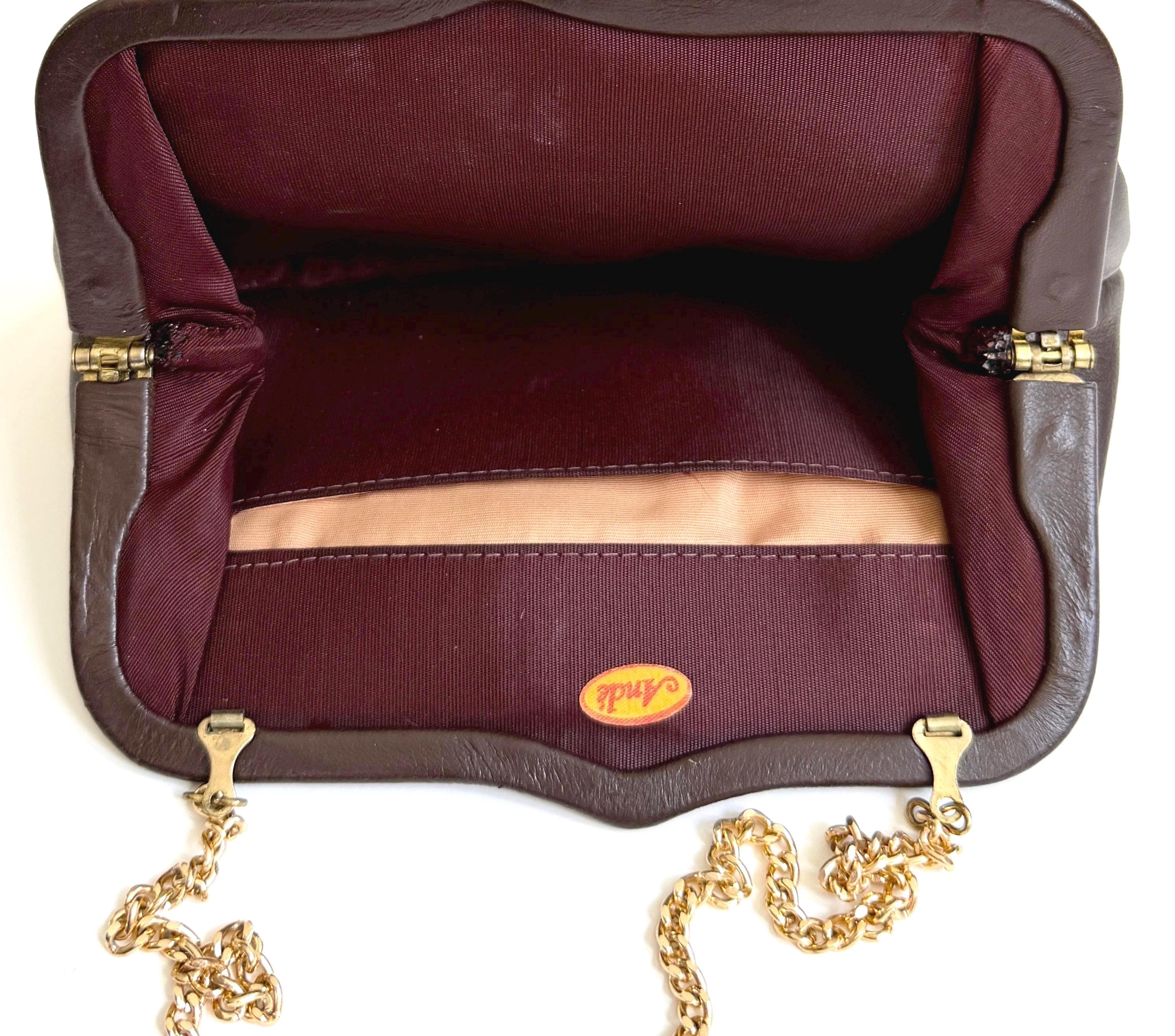 Vintage chocolate brown leather convertible bag / clutch with gold tone strap