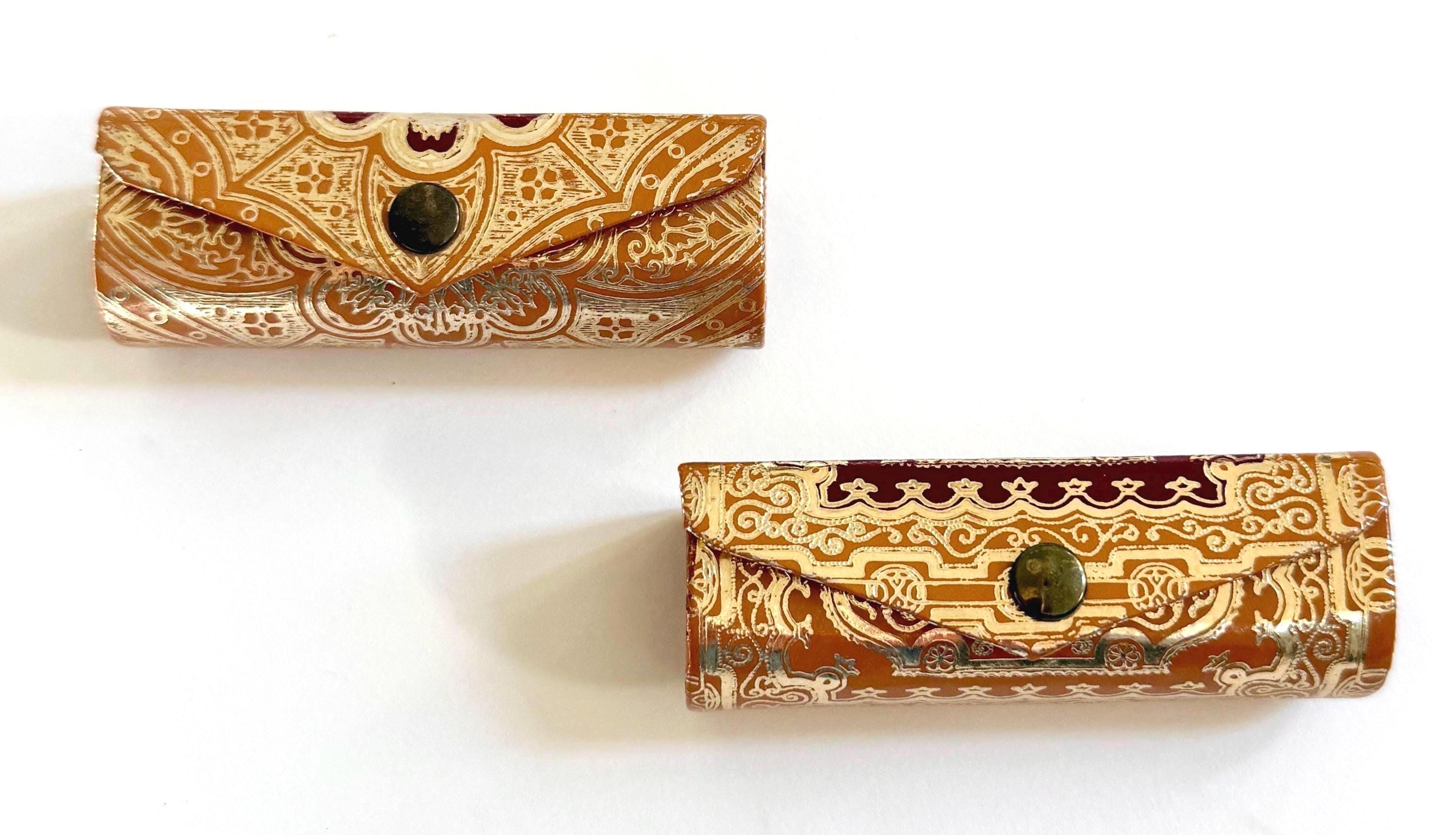 Vintage Italian Fiocchi leather lipstick case with interior mirror