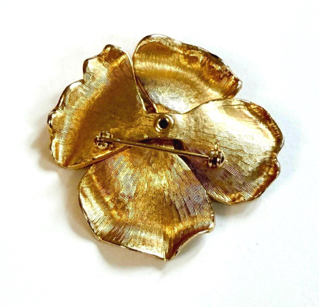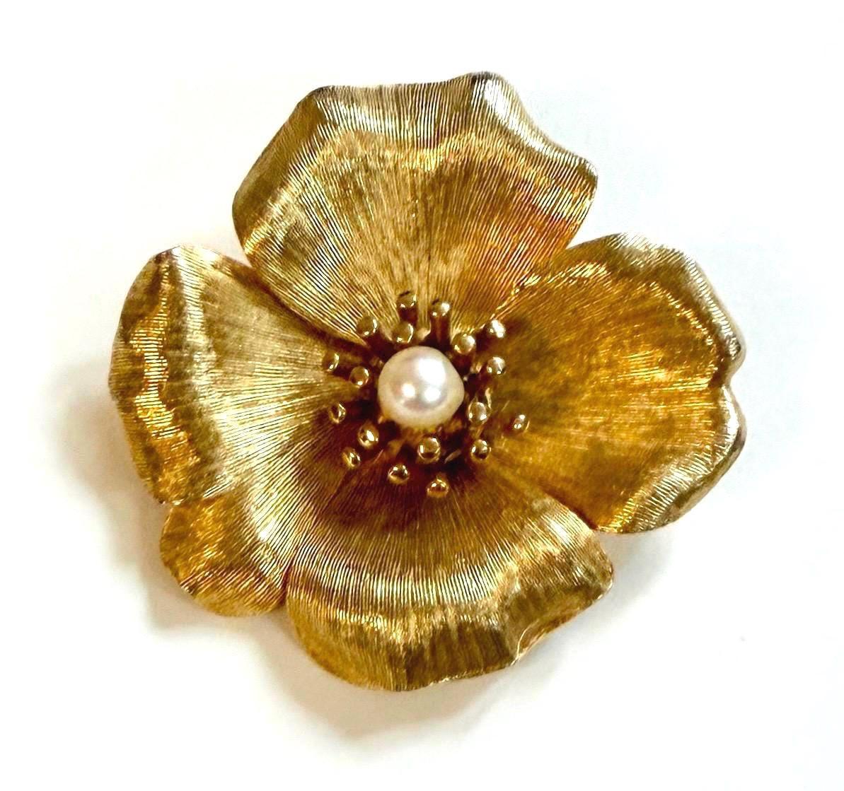 Vintage gold tone flower brooch with pearl detail